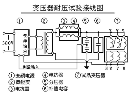 變頻串聯(lián)諧振交流耐壓試驗(yàn)裝置的接線圖: