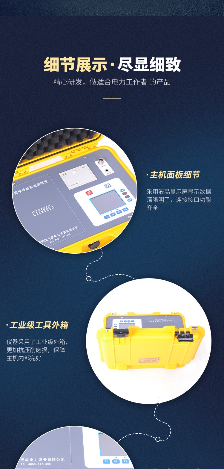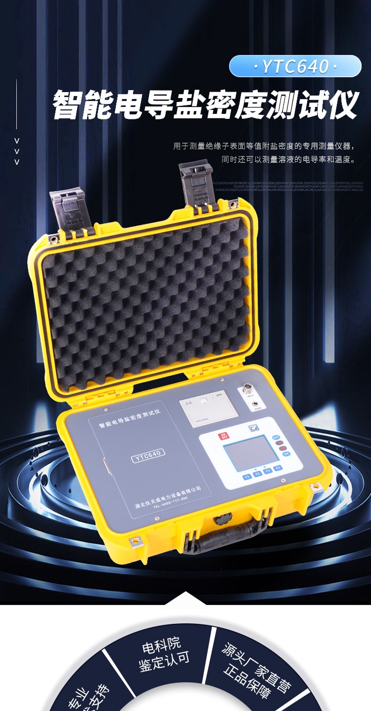 YTC640智能電導鹽密度測試儀是針對電力系統(tǒng)防污閃檢測而研制的,用于測量絕緣子表面等值附鹽密度(以下簡稱“鹽密”)的專用測量儀器,同時還可以測量溶液的電導率和溫度。整機以其測量精度高、讀數(shù)直觀、測量范圍大、使用方便等特點廣泛地應用于電力、教學、科研及其它相關行業(yè)。