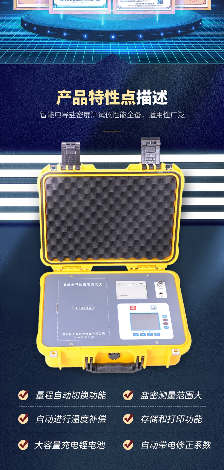 5、 通過帶電修正系數(shù),自動將不帶電測量的鹽密度(ESDD)轉換為帶電測量的鹽密度(ESDD)。