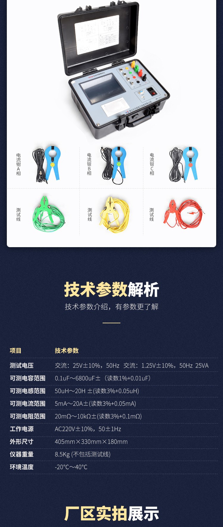 1.儀器可在不拆線的情況下,一次接線可完成三相電容器組的電容器測量。