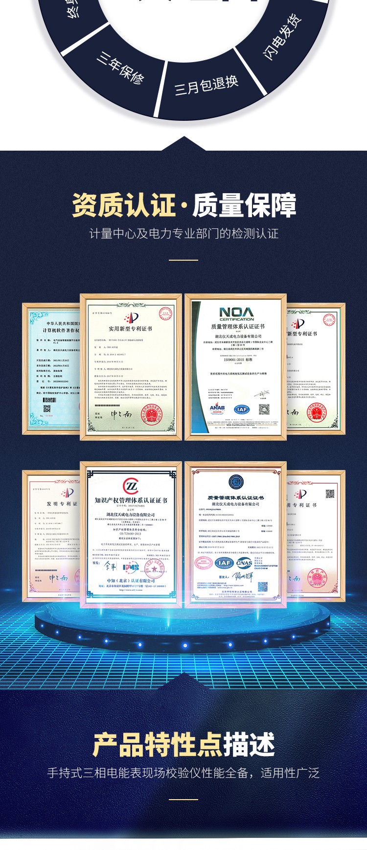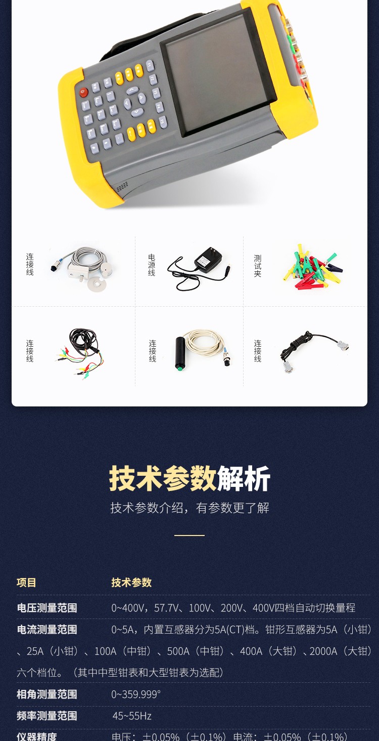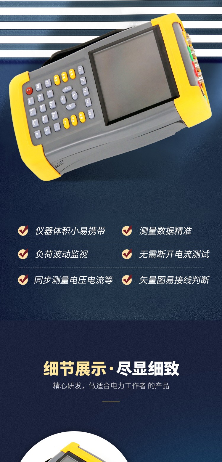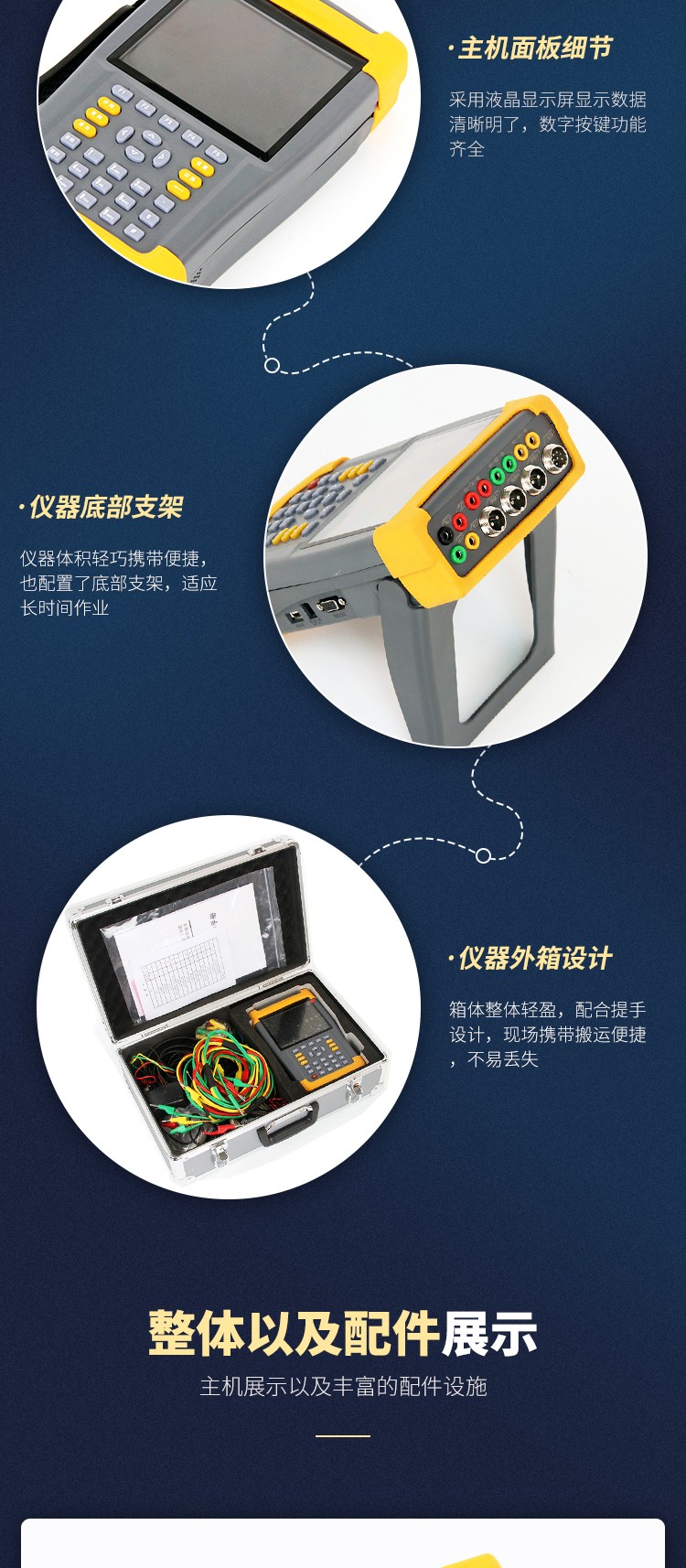 3、準(zhǔn)確測量電壓,電流,有功功率,無功功率,相角,功率因數(shù),頻率等多種電參量,從而計算出測試設(shè)備回路的測量誤差。