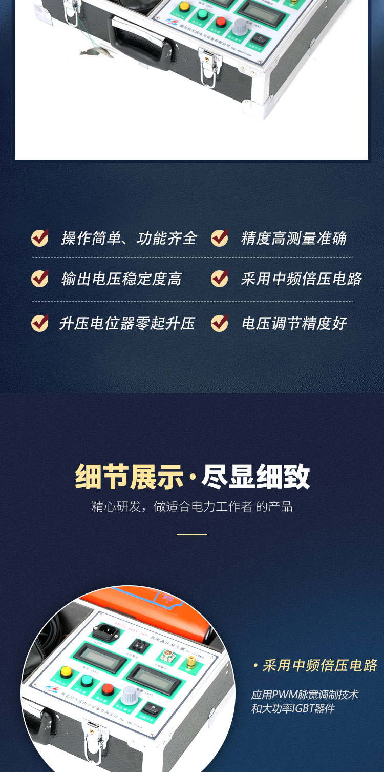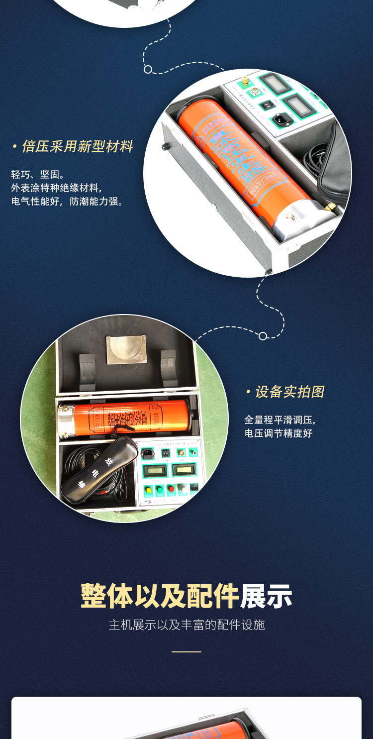8、倍壓采用新型材料,輕巧、堅固。外表涂特種絕緣材料,電氣性能好,防潮能力強(qiáng)。