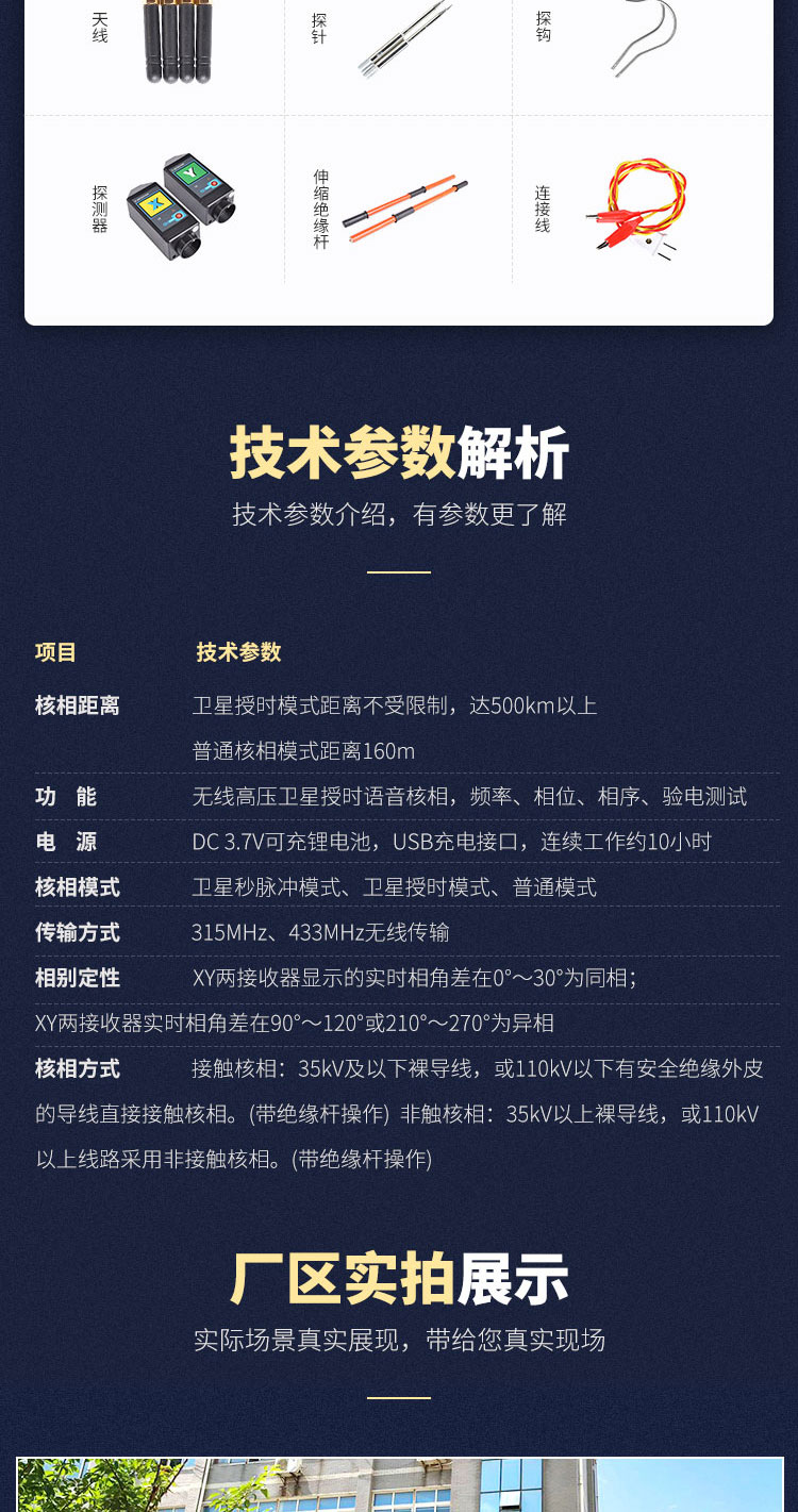 3、測試功能強,空曠地面普通核相距離可達160m,衛(wèi)星授時核相距離大于500km,能對10V~550kV的電壓線路全智能核相,也可用于高壓線路和完全密封的環(huán)網(wǎng)柜低壓感應點核相,