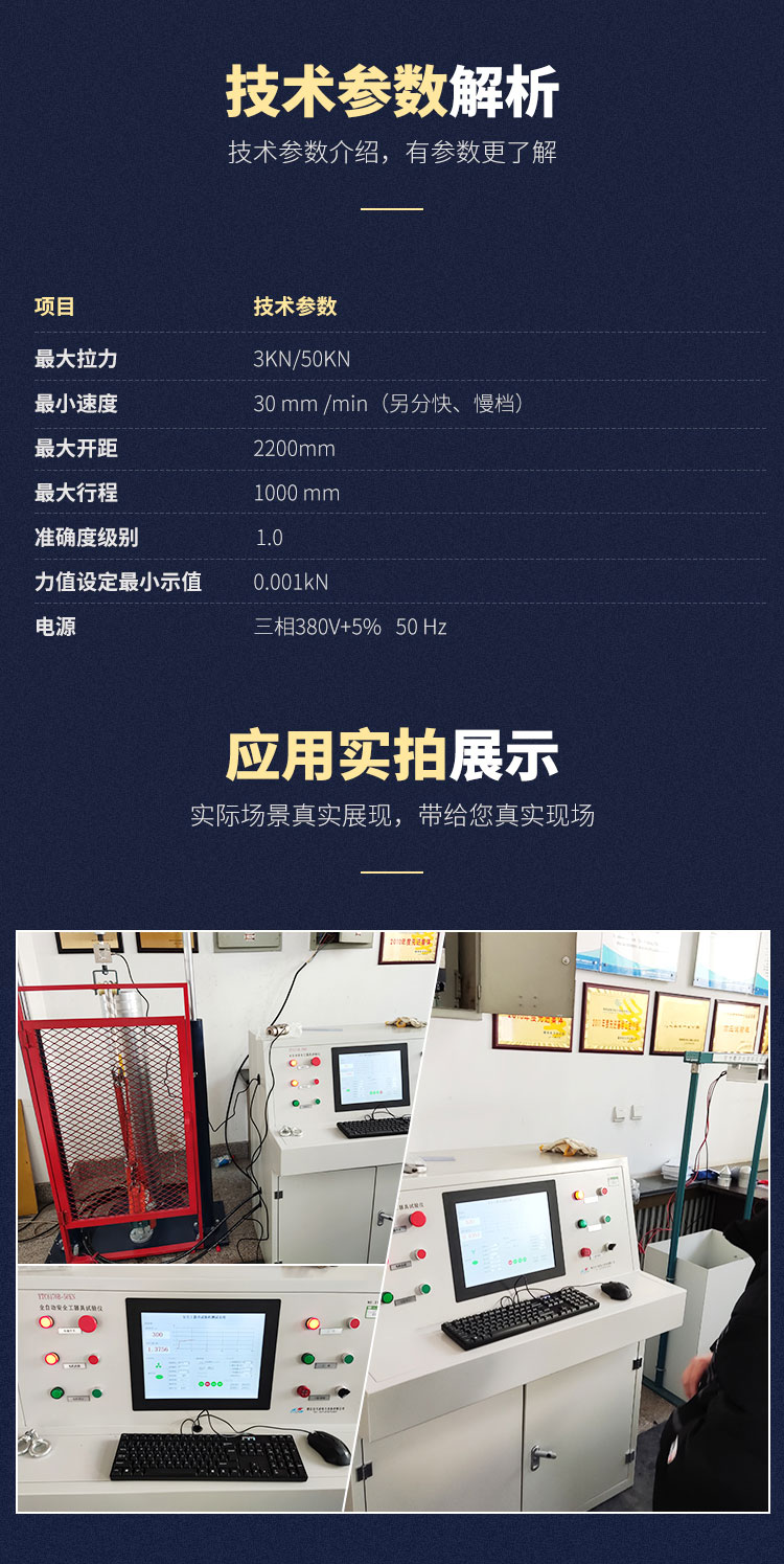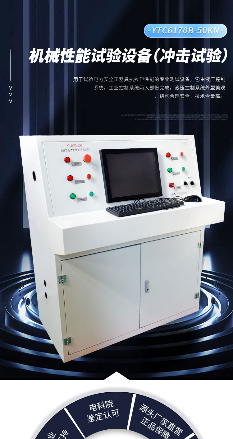 YTC6170B-50kN 機(jī)械性能試驗(yàn)設(shè)備(沖擊試驗(yàn))是按照《國家電網(wǎng)公司電力安全工作規(guī)程》的要求用于試驗(yàn)電力安全工器具抗拉伸性能的專業(yè)測試設(shè)備,它由液壓控制系統(tǒng),工業(yè)控制系統(tǒng)兩大部份完成,液壓控制系統(tǒng)外型美觀,結(jié)構(gòu)合理安全,技術(shù)含量高。工業(yè)控制系統(tǒng)采用工控機(jī)操作,集信號采集、轉(zhuǎn)換、處理、數(shù)據(jù)運(yùn)算、數(shù)據(jù)庫管理,實(shí)時顯示及執(zhí)行元件的控制等功能于一身,它廣泛適用于電力安全工器具(大腰帶、小腰帶、安全繩等)的安全檢測,鋼纜、繩纜、葫蘆、雙鉤、滑車等各類起重工具的拉力試驗(yàn),還可以為線路、金具、絕緣瓷瓶等機(jī)械進(jìn)行靜載荷試驗(yàn)。