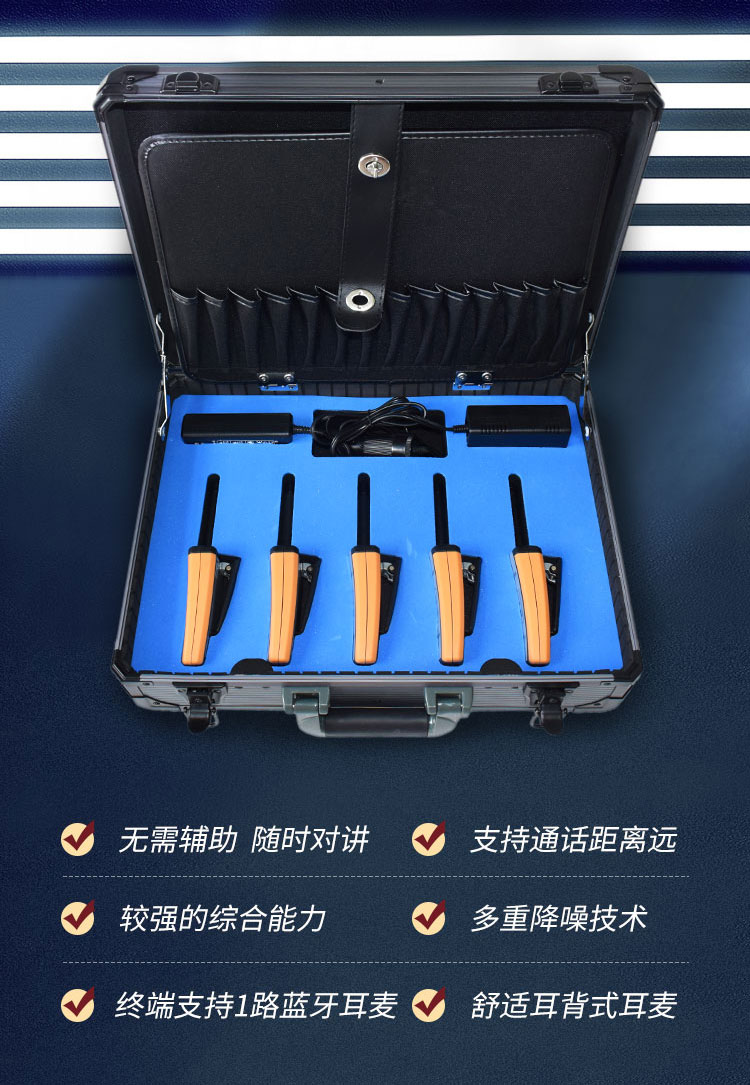 2、標(biāo)配4個(gè)終端,4個(gè)藍(lán)牙耳麥;允許4個(gè)用戶同時(shí)講話所有用戶都能聽(tīng)見(jiàn)。