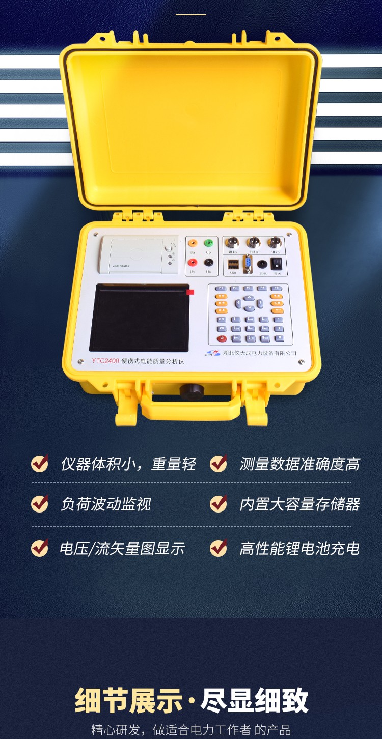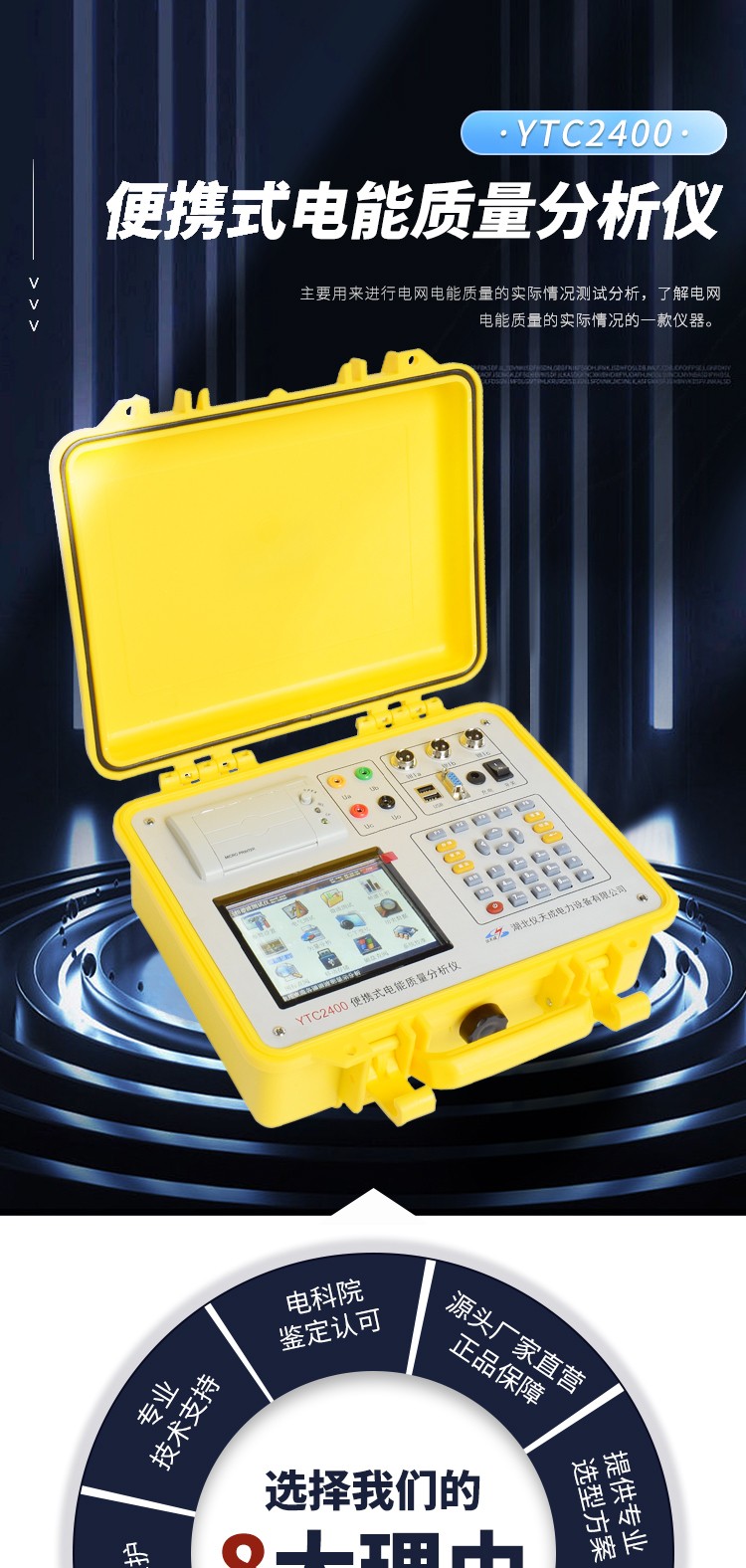 YTC2400電能質(zhì)量分析儀是我司根據(jù)國(guó)家相關(guān)標(biāo)準(zhǔn)精心研制的一款用來(lái)測(cè)試電網(wǎng)電能質(zhì)量的實(shí)際情況的測(cè)試儀器,具有體積小、重量輕、便攜式和手持式兩種形態(tài),方便現(xiàn)場(chǎng)試驗(yàn)等特點(diǎn)。