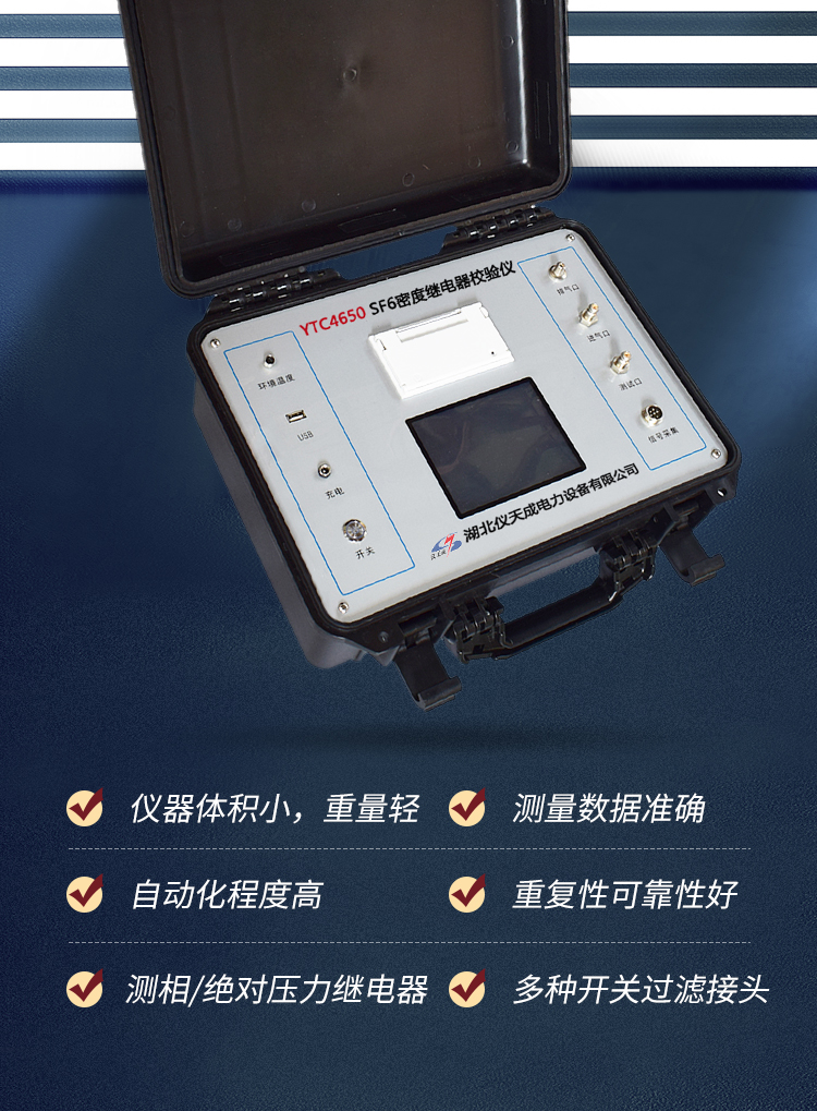 在封閉容器中,一定溫度下的SF6氣體壓力可代表SF6氣體的密度。為了能夠統(tǒng)一,習(xí)慣上常把20℃時SF6 氣體壓力作為標(biāo)度值。在現(xiàn)場校驗時,在不同的環(huán)境溫度下,測量的壓力值都要換算成其對應(yīng)20℃時的壓力值,從而判斷SF6密度繼電器的性能。 YTC4650型智能型SF6密度繼電器校驗儀對這個過程是自動完成的,既準(zhǔn)確,又靈活方便。本儀器除可對SF6密度繼電器校驗外,還具有對壓力表、密度表進(jìn)行校驗和儀器自校的功能,這樣不僅可以一機(jī)多用,還免除了儀器送檢和返廠校驗的難題。