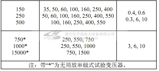 a)單臺無局放試驗變壓器的短路阻抗百分數(shù)為4%~12%。串級式無局放試驗變壓器的短路阻抗百分數(shù)應不大于18%。在表1中末包含容量的串級式無局放試驗變壓器的短路阻抗由制造廠和用戶協(xié)商確定。單臺和串級式無局放試驗變壓器空載電流不大于額定電流的10%。