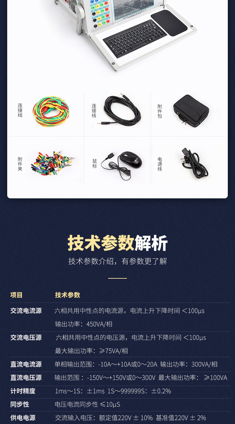 10、自帶110V/220V輔助直流電源,可在試驗(yàn)現(xiàn)場為保護(hù)裝置供電。